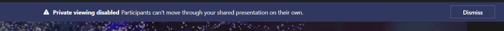 Whoever is in control of the presentation has also the control to disable/enable private viewing mode.