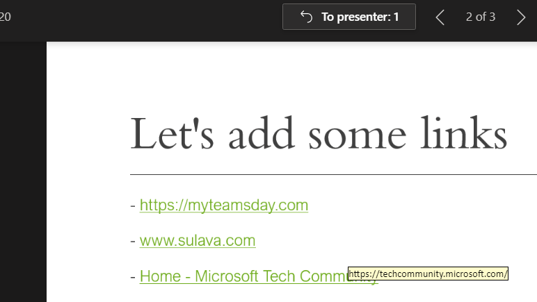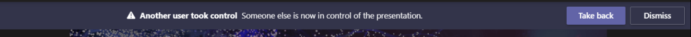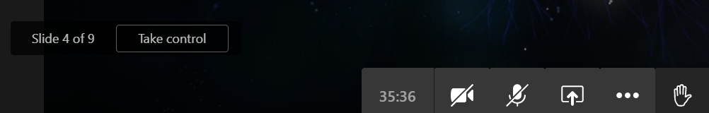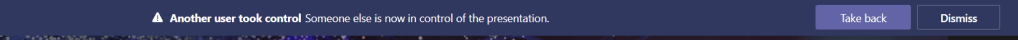 Note: if you are a presenter in the meeting where a PowerPoint is shared to you can take control of the shared PowerPoint to advance slides. This does not ask for any confirmation and the feature is really useful when you have multiple presenters who use the same slide deck. Just be careful that everyone else are not presenters – or they know not to touch it.