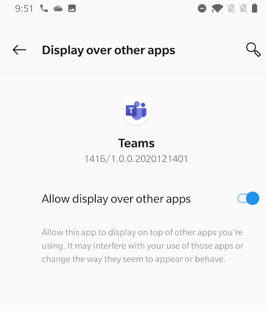 You may have to adjust settings to turn on allowing Teams to display over other apps.