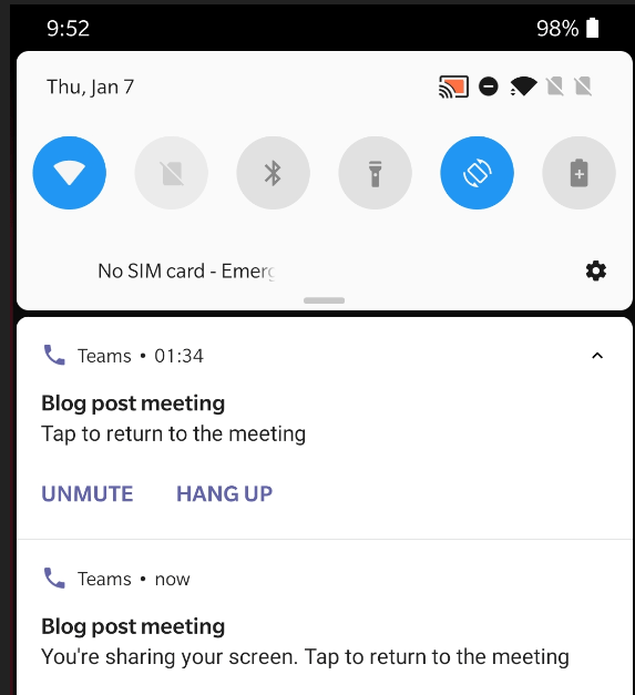 And if you pull down notifications area you have option to return to Teams meeting (if you have been using some other app) and there is also the notification that you are sharing your screen.