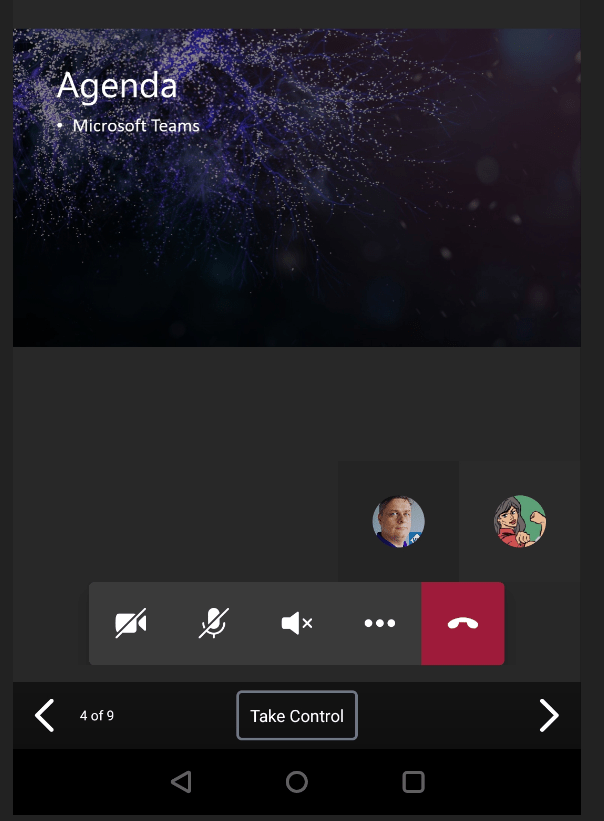 Using Teams mobile you can also take control of a PowerPoint someone else is presenting (if you are a presenter in the meeting). This means that you can participate in a multi-presenter meeting quite easily by using just your mobile device and Teams!