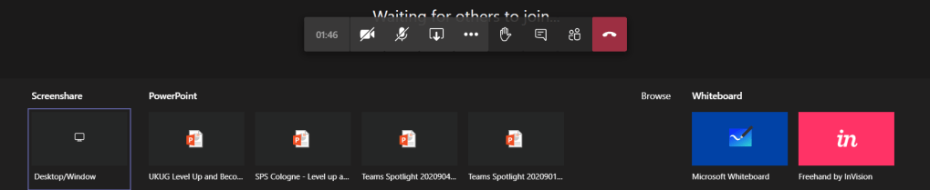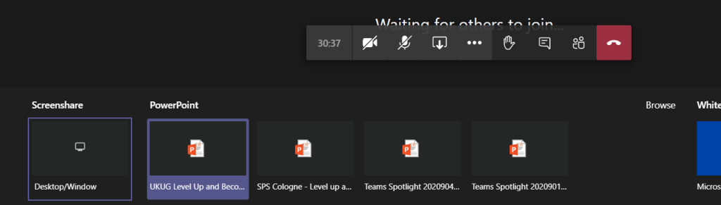 This list of sharing PowerPoints is causing often some big questions. PowerPoint presentations will be in the list once you edit or open the PowerPoint presentation in Teams or OneDrive (there may be some short delay). Generally it applies to the next meeting you join. Make sure you prepare for the meeting by opening the document in advance. Simply uploading a presentation to OneDrive or Teams does not bring it to the list – you need to open/edit it as well.