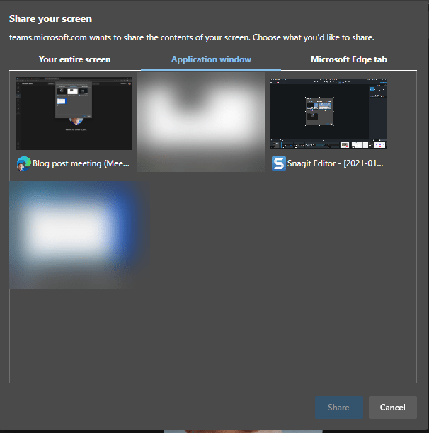 This is useful when you want to show something specific that runs in it’s own application but you can not share anything else on your screen.