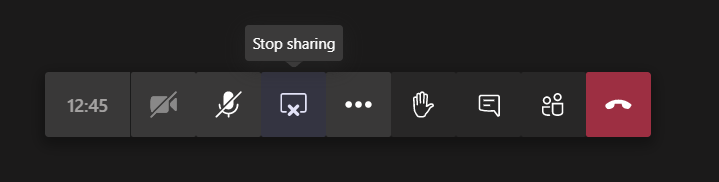 You can end sharing using either that toolbar or you can navigate to your web Teams meeting and choose Stop sharing from the toolbar there.