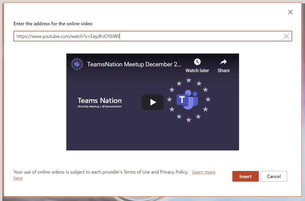 - Sharing a video in Teams meeting (or in Live event) is usually ok but you can expect some quality drop – especially if you have a lower bandwidth. Have a backup link to the video available. People seem to struggle more with videos embedded inside a PowerPoint.