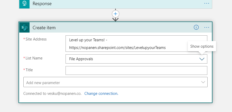 You may have to switch from a Logic App to Cloud Flow at some point – like we did in this example. Plan carefully how you do the data exchange and where do you store the information & who can access it. The HTTP trigger in this example isn’t the safest one to use (it lacks security) so you need to plan how you either add some security to it or secure it in some other way. In my earlier post I also made some pointers about this: look them up.