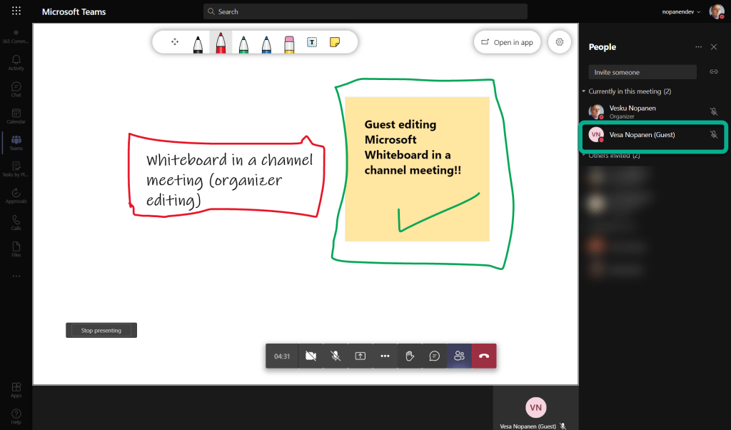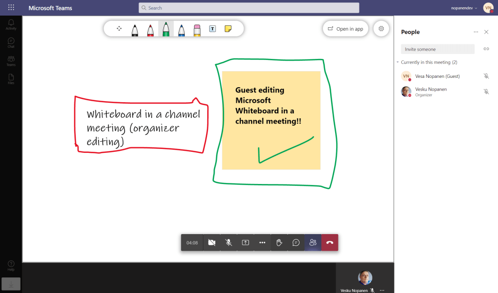 Guests in the team / organization can also edit the Whiteboard in the team channel tab.