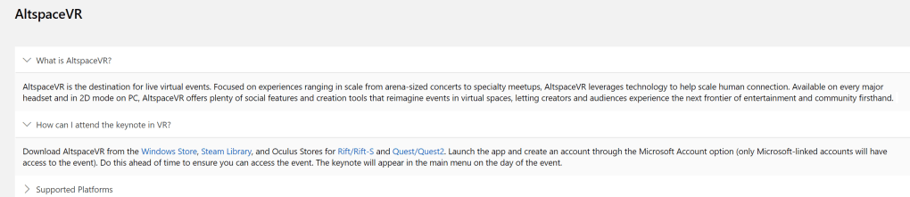 ⭐ Make sure to install AltSpace VR in advance so you can attend Satya Nadella Keynote at 6:30 PM EET. You don’t need a VR/AR headset since 2D viewing is possible.
