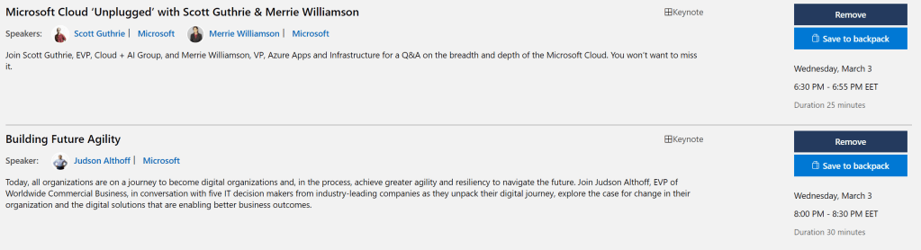 ⭐ Don’t miss other keynotes! There are several on Tuesday following Satya Nadella Keynote but there are also keynotes in Wednesday!
