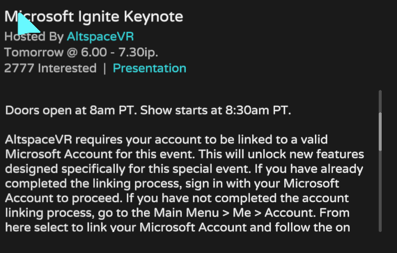 Make sure you use AltSpace VR with the Microsoft Account linked to the Microsoft Ignite 2021.