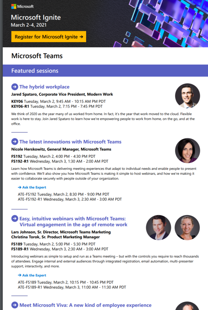 👈 Here is a small snippet from Teams Session brochure: Check out at least keynote sessions like
