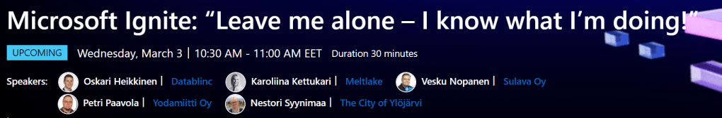 Check out my good friend Chris Hoard’s post about prepping up to Microsoft Ignite 2021 – there are more sessions you should be interested to add to your own catalogue and also very useful tips and tricks how to get though the Microsoft Ignite without online fatigue!