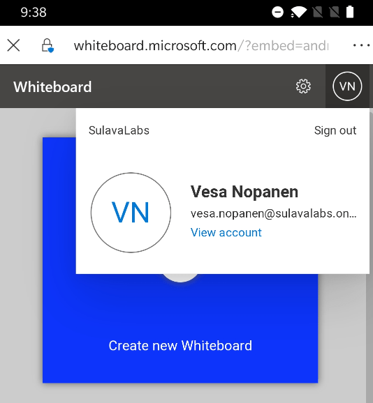 Microsoft Whiteboard in Android app