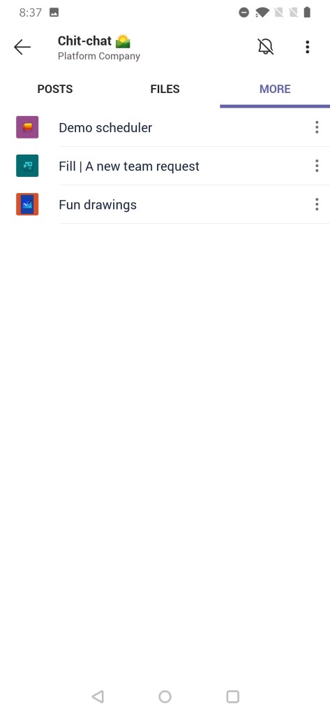 Opening Teams in Android and navigating to the channel tabs we can see the Whiteboard there: