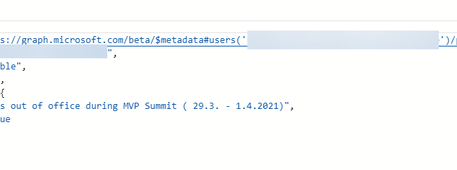 I initially tested Get Presence Graph API over a year ago and a revisit showed it has been updated recently. You can now retrieve Out of Office information along with it! To get started with it easily - and to see how it works - I recommend using Graph Explorer. It allows you to use … Continue reading Get Presence Teams Graph API updated