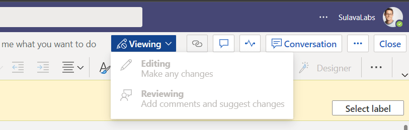 When the recipient opens the file in Microsoft Teams they can see in the editor they are not able to edit the file.