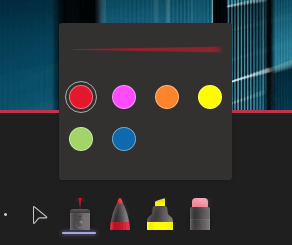 You can choose your laser pointer color when you click once more on the laser pointer icon as first click selects the tool and second one opens it’s options.