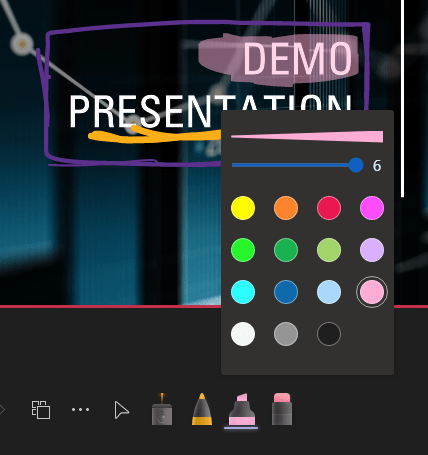 Highlighter: Allows you to highlight content on the slide. You can choose the color and thickness.