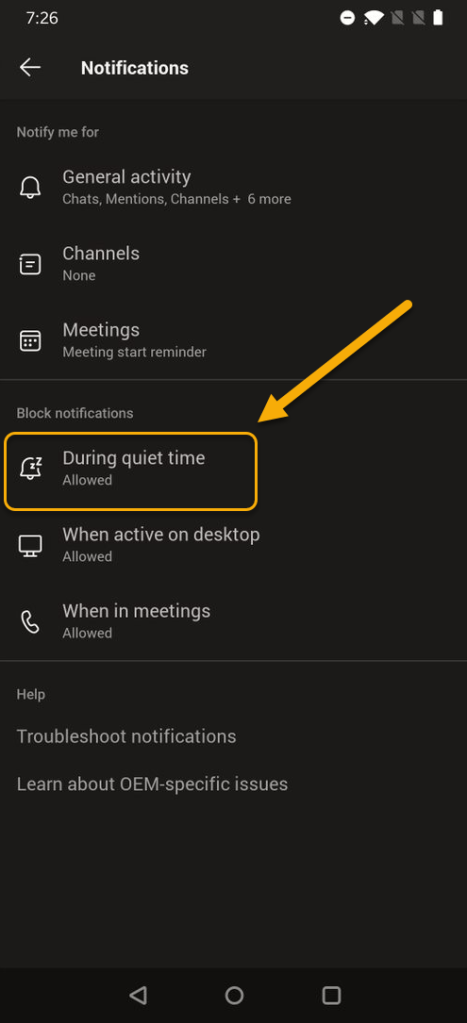 As a reminder, you can set Quiet Hours on Teams mobile by going to notifications.
