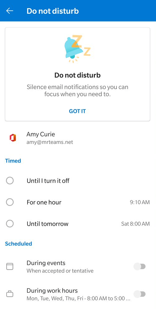 Of course you can choose to sign-out of Microsoft Teams during the vacation and remove your Office 365 account from your phone (or at least turn off email syncing) but there are other alternatives to this. Especially if you know you that you may have to take some action during your vacation. Or that suits you better. What I do, is that I turn on Teams Quiet Hours, set Out of Office and turn on Outlook mobile to Do not Disturb. I am not removing my Teams icon from my mobile’s front screen but this is not because of work but because I have other tenants I use – for example in MVP interactions. However – I want to set Quiet Hours so that I don’t receive notifications but instead I do my best to reduce the feeling of urgency and also checks “if there is something new out there”. I know it will take at least a week (or even two) for me to wind-down from actively doing checks..