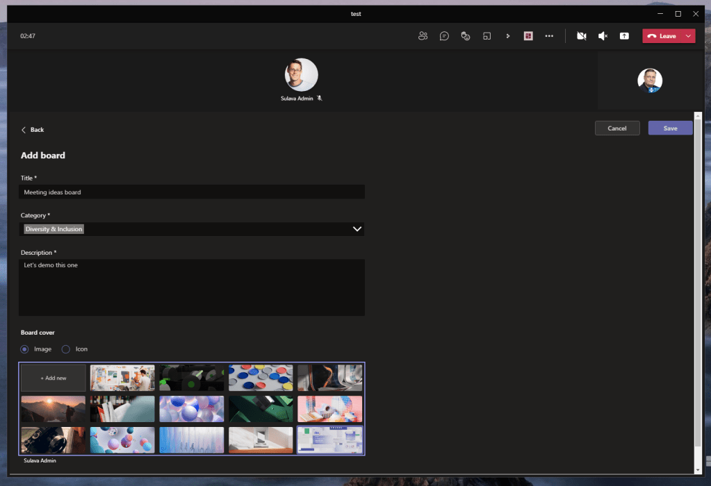 When the other participant searches for the Meeting they can find the new board I just created as other user.