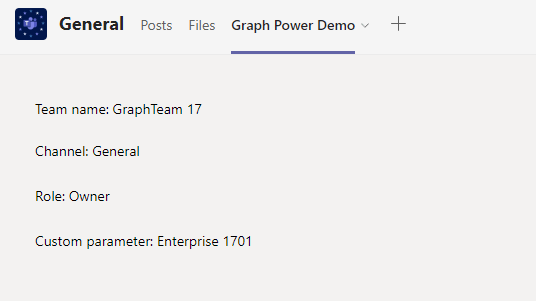 There isn’t a pure custom parameter you can add to Power Apps. But there are parameters that can be defined and passed to the Power App in team tab when the tab is added. This means you can reuse an unused parameter to pass along your own data to the application – thus making it possible to fine-tune it to the team.