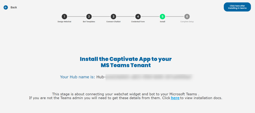 It is important to follow the installation Guide. Naturally I didn’t follow it the first time since I missed this announcement written in house-sized letters right at the beginning. The guide includes setup steps needed to connect the bot to the Hub, it is not just a “this is how you install app to Teams” instruction.