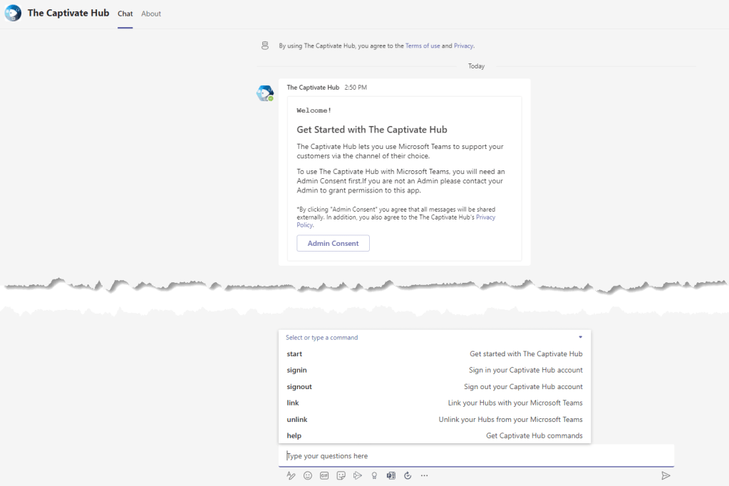 Captivate Hub is a interesting technology that can be used easily for this purpose. I like experimenting so this one was right on there, despite that I didn’t add other channels to it yet – only used my test website. Ability to provide chatbot variety of channels to people and escalating that botchat to chat with a real person is very powerful. And it is not just Teams where that live chat can happen.