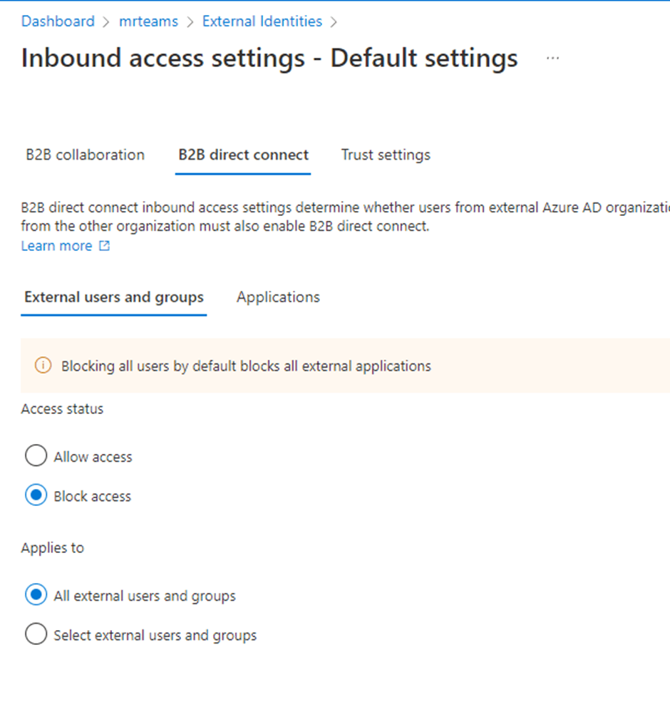 Now you can go and change inbound access to enable people from metaversed-tenant to be invited to Shared Channels.