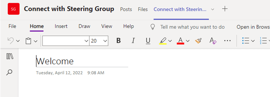 There is a caveat in the OneNote – I can’t access it directly via channel tabs. If I try to open it that way I get an error message. This may be because it is in preview or still rolling out – I am expecting it will work just fine soon.