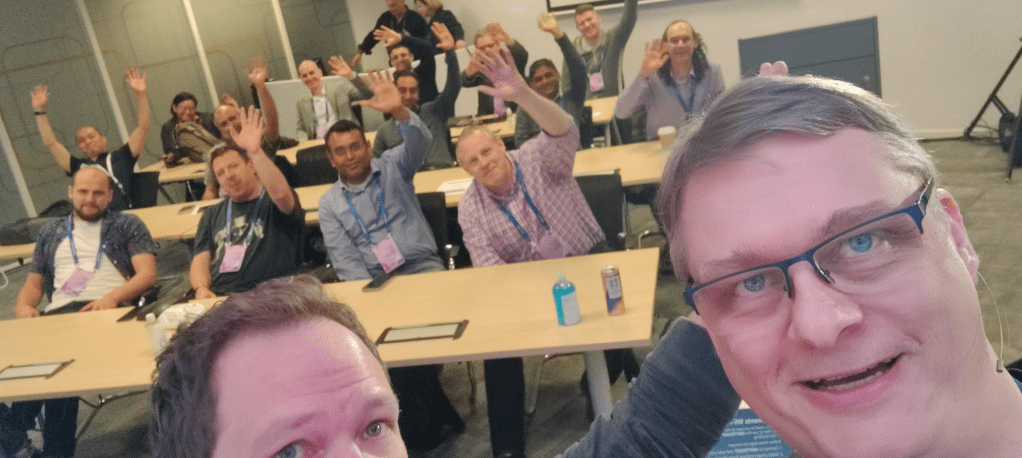 Chris Hoard and I were in the session room getting things ready, when I just had to take a photo of us a few minutes before we started. Our third host, Sharon Sumner, was presenting with us online. The setup for hybrid event like this worked very well. During our Microsoft Teams – are you ready for the Metaverse? session we had great talk about Metaverse with both on-site and online audience. We had over 100 online attendees at one moment and there were over 20 in the room. 30 minutes is quite a short one for that, but we stayed on time and had lots of energy in the room! The recording will be available for on-demand viewing so make sure to check it out!