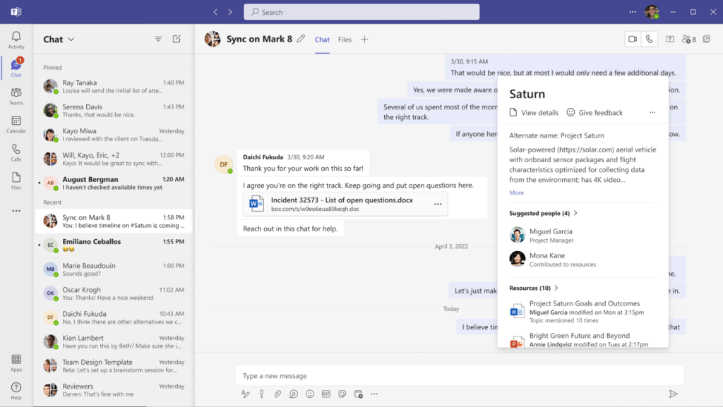 Viva Topics in Teams allows users to mention topics in their chat conversations so that others in the conversation can easily learn more about a topic by hovering over the topic name and viewing the topic card. This feature requires users to have a Viva Topics license. Coming late July.
