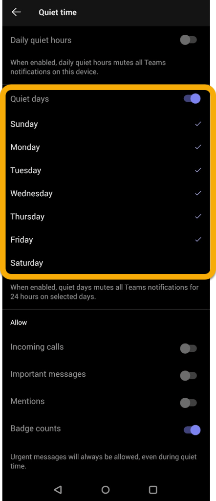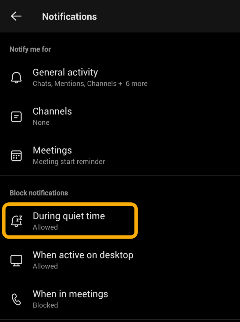 As a reminder, you can set Quiet Hours on Teams mobile by going to notifications.