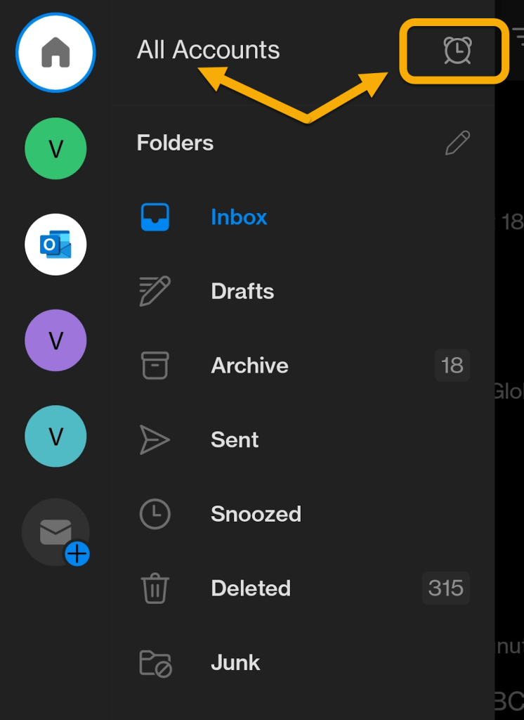 Make sure you have All Accounts selected and then tap on the Alarm Clock icon.