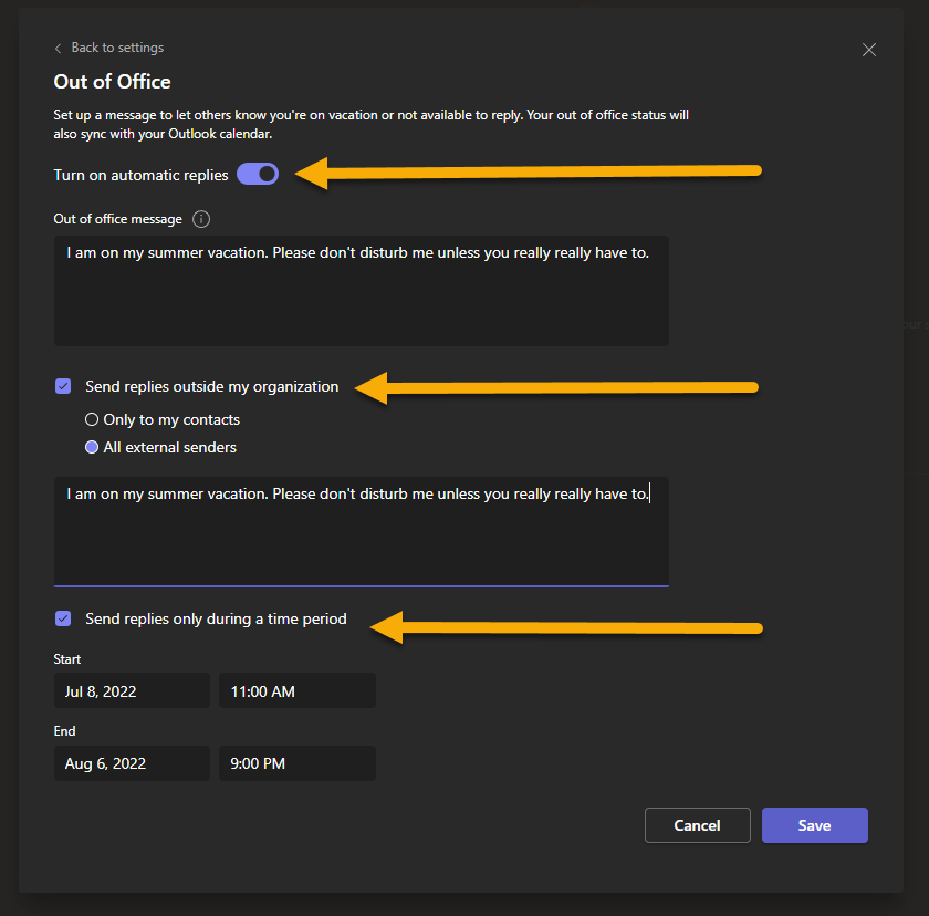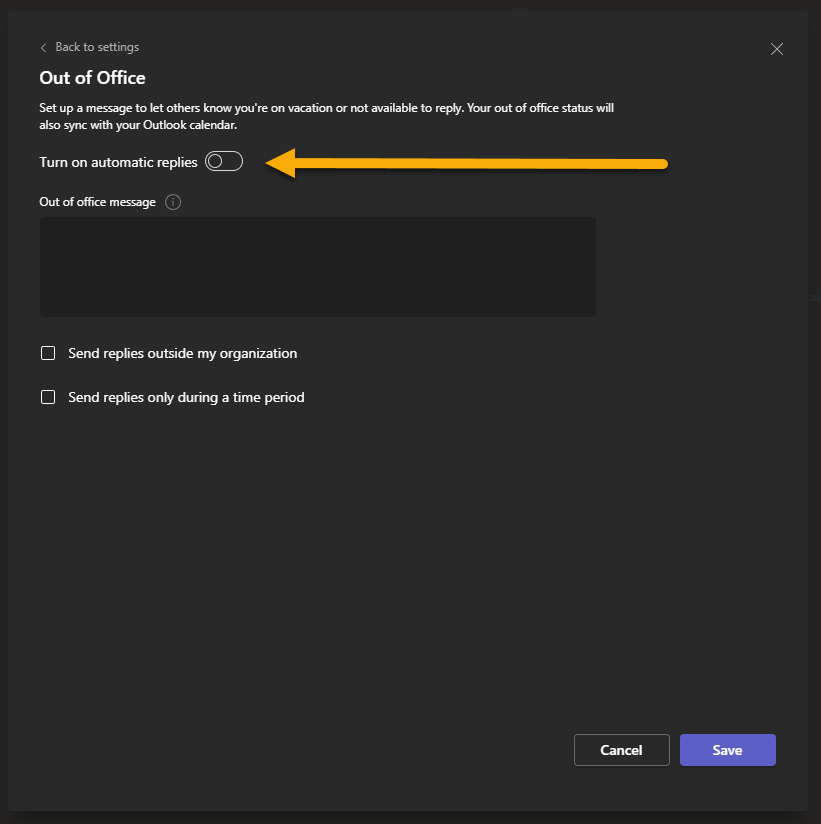 Set Out of Office in Microsoft Teams