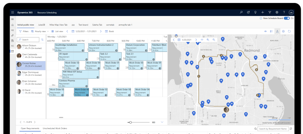 Field Service also includes smart resource scheduling that can help to optimize workforce by minimizing travel time and mazimizing utilization.Picture source Microsoft Field Service.