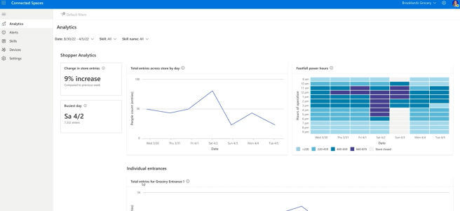 Connected Spaces is a good example of intelligent Azure Edge technology. It can use your existing security cameras which are connected to the Azure Edge device, that is installed into the same space or store, that uses it’s local intelligent Vision AI to analyze the video stream to discover people, movement and where they are spending their time. The video stream and images don’t leave the premises – these are processed on the location on the Edge computer. The analysis results are then synced to the Connected Spaces service in the Azure. This means that people are not identified who they are and their identity is not revealed – for the analysis only the information like “what’s the location, is that a person, is the person moving and to which direction, or is that person waiting” is relevant. Microsoft is commited and following Responsible AI putting ethics and people first. Microsoft also have a Transparency Note about Connected Spaces.