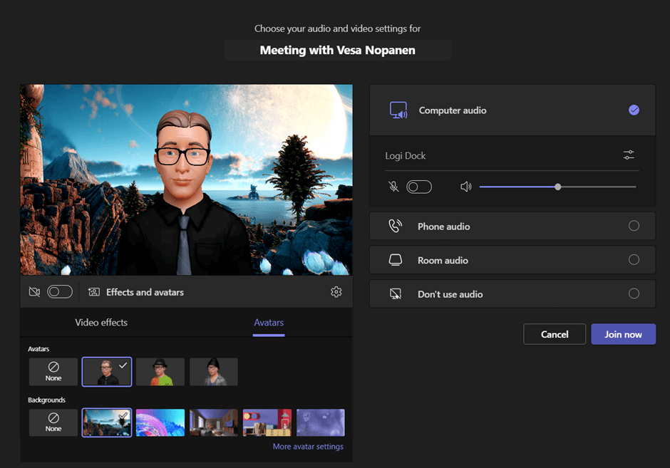 When you are joining a Teams meeting, you can choose your avatar and customizer the background as well very easily.