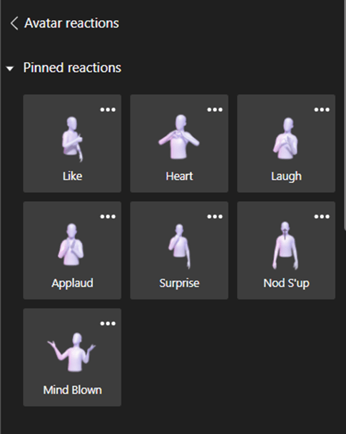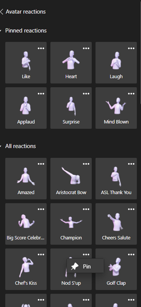 There are lots of reactions to avatars. What is great that you can pin the ones you like to use the most.