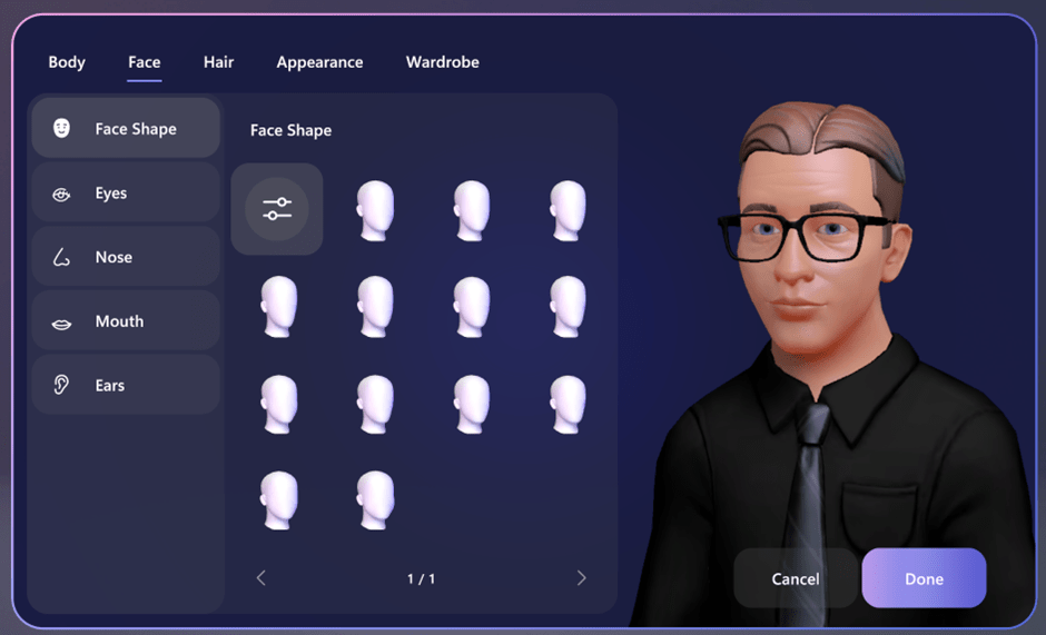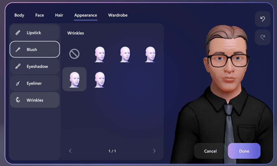 What I really like in these avatar options, is that these don’t try to make everyone look like they are in their prime 20s or superheroes. You can add age effects and play around with hair color and various other customization ways. There are truly a lot of options for building your avatar!
