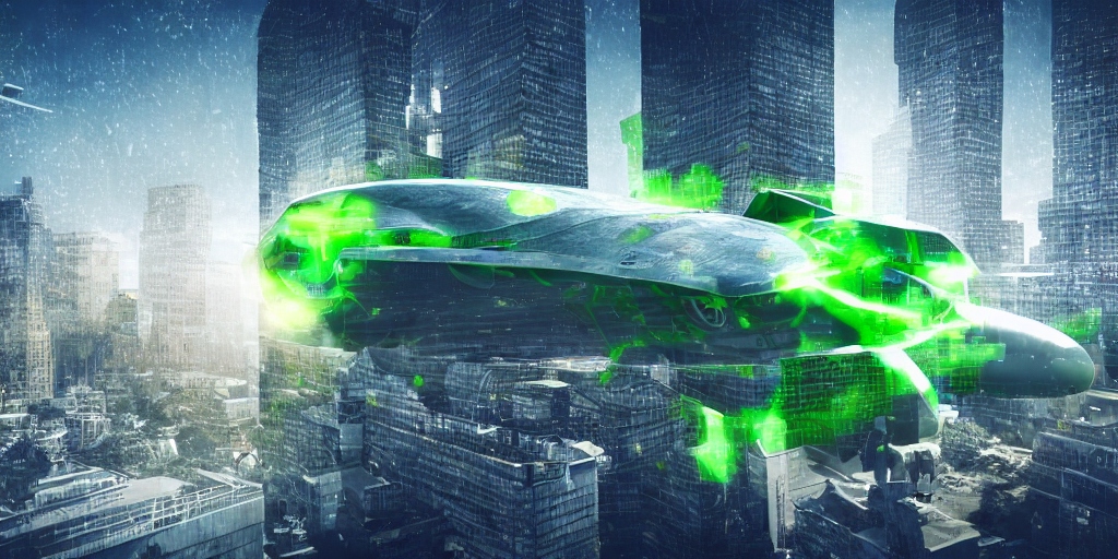 Of course this means that it will disrupt people working with arts and photos. But until the Artificial Intelligence learns more about creativity there are still a lot of content creation where human mind will be the superior one. AI can only learn from something that has been already created – by people or AI. When human being creates a piece of art or sets up and takes great looking stock photos it takes lots of time and effort to get it right. AI can generate 10 different variations in a matter of minutes to hours. Not all variants will be usable, but sometimes there are several images from the same batch that can be used. For example this one I created with Stable Diffusion with the prompt Matrix Style Realistic Image of spaceship and green fire in city