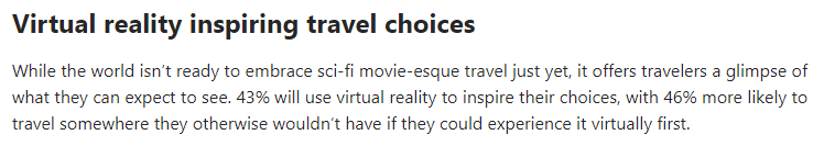 Personally I think Booking.com article rings bell for me when I consider travel outside business: I would love to visit the place in advance in the Metaverse (or virtual reality, but Metaverse would surely be even more interesting) to gets more details and visuals where I would want to stay or visit. I also wrote about this already in August 2022, and I hope it takes steps forward during 2023.