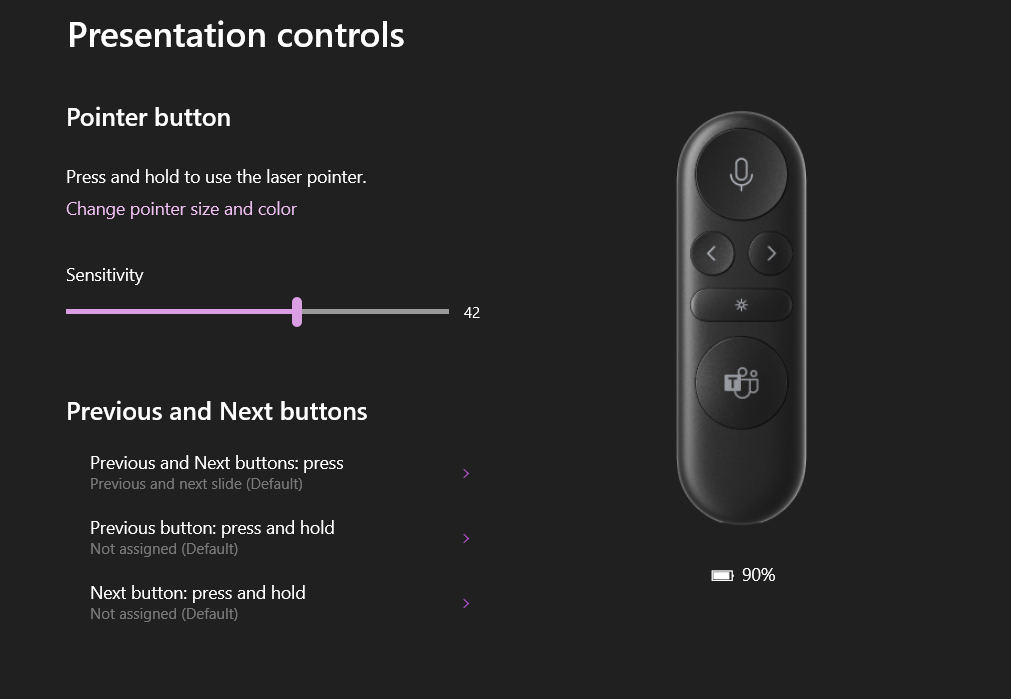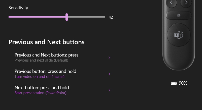Laser pointer is a nice bonus, since it also uses Teams PowerPoint Live feature directly. When presenting outside Teams meeting, Logitech’s highlight/spotlight feature is very powerful, compared to the laser pointer Presenter+ gives.