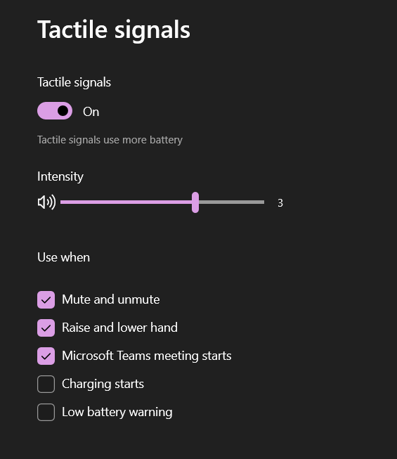 It is possible to configure also which tactile signals are used.