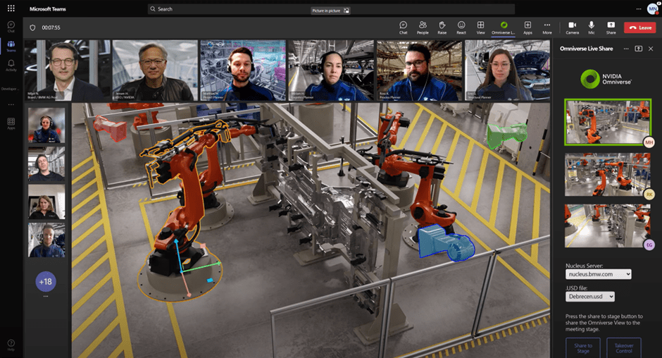 NVIDIA and Microsoft are integrating Omniverse into Microsoft productivity suite, starting with Microsoft Teams, SharePoint and OneDrive. I really loved how they use Microsoft Teams meeting Live Share (collaborative apps) to bring Omniverse directly to Teams meeting stage, with co-authoring capabilities. This allows people collaborate and meet in Microsoft Teams and use Omniverse during the meeting. They didn’t reveal how SharePoint and OneDrive will be integrated, so we can expect more news on those.