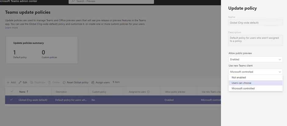 Now it is a good time for IT Admins to opt-in and enable new Teams experience to their organizations. Of course, don’t forget to let people know what the new toggle will do – and why and when they should use classic or new Teams. At this point new Microsoft Teams preview is only available on Windows. Admins can activate New Teams in Teams Admin Center (TAC) under Teams Update Policies. Selecting Use new Teams client to Users can choose will bring the toggle for users having that policy. Note: it can take a while before it is seen by user. Logging Teams out and back in can speed up the process.