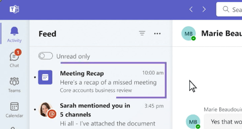 - Recording with markers such as you were mentioned, something was shared, PowerPoint Live slides and moments of joining / exiting the meeting (in case you joined it only partially)