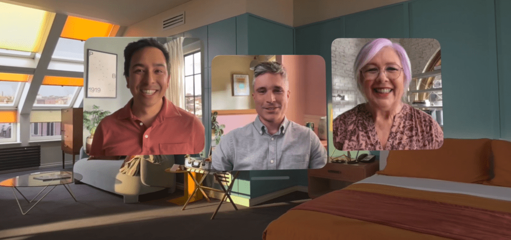 Second thing was the new FaceTime experience. You use the 3D camera to record your avatar off your face and that avatar will be replicating your facial and hand movements to other FaceTime participants. I can’t stop to think how Meta Quest Pro did this – with eye and facial tracking. What Meta hadn’t though is to scan person’s real face to be your avatar and animate that one in the metaverse. That requires more power and bandwidth, so that may be one reason why we won’t be seeing it in the metaverse very soon – as there are different kind of devices with different capabilities connected to it. But Apple doesn’t want to worry about that – they are just fine to run it inside their “AppleVerse”. This doesn’t take away the coolness factor. However FaceTime in Mixed Reality looks really cool – as you see others in much larger format than on tablet’s screen.