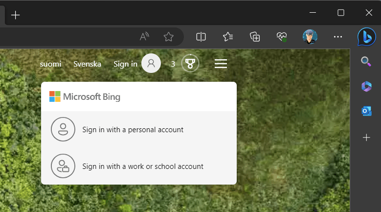 When you are in the browser go to www.bing.com and sign into your M365 account.