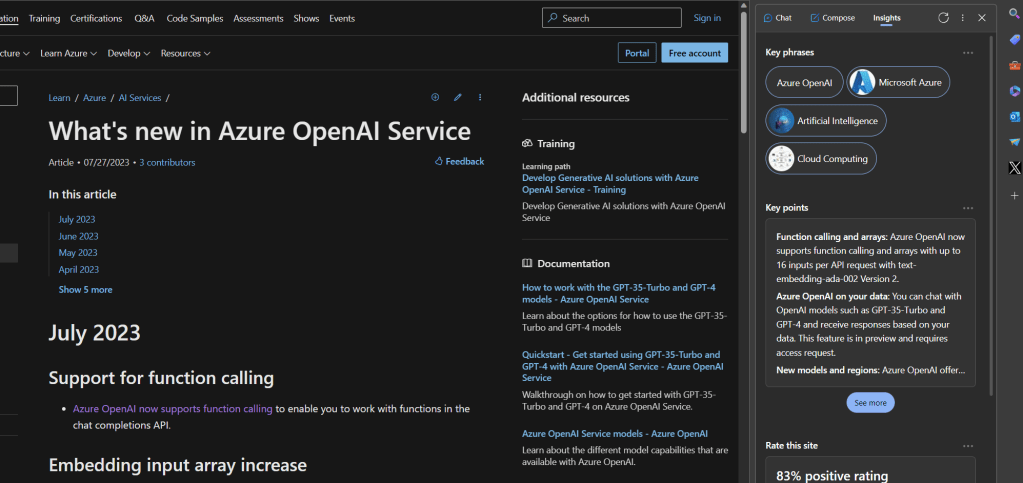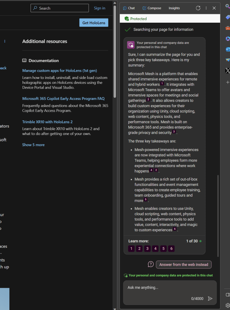 I have Bing to Chat Enterprise as my AI assistant to help me consume more information more quickly – and help me generating content. It can help people to be more productive. No, it is not Copilot with versatility but understanding the open web page is a pretty great thing.